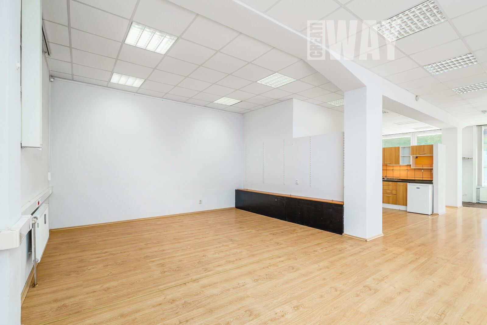 Hned při vstupu si uvědomíte, že zdejší 100 m² představuje skutečně rozsáhlou plochu. Prostor je otevřený a vzdušný, což vám umožňuje ponechat si jednotný celek nebo jej efektivně rozdělit pomocí příček na menší zóny. Velká skleněná výloha propouští hojné množství přirozeného světla, čímž vaše produkty či služby zaujmou nejen kolemjdoucí, ale také návštěvníky z okolních ulic. Proti přímému slunci a zvědavým pohledům jsou všechna okna vybavena vertikálními žaluziemi, což zajistí komfort pro vás i vaše zaměstnance.