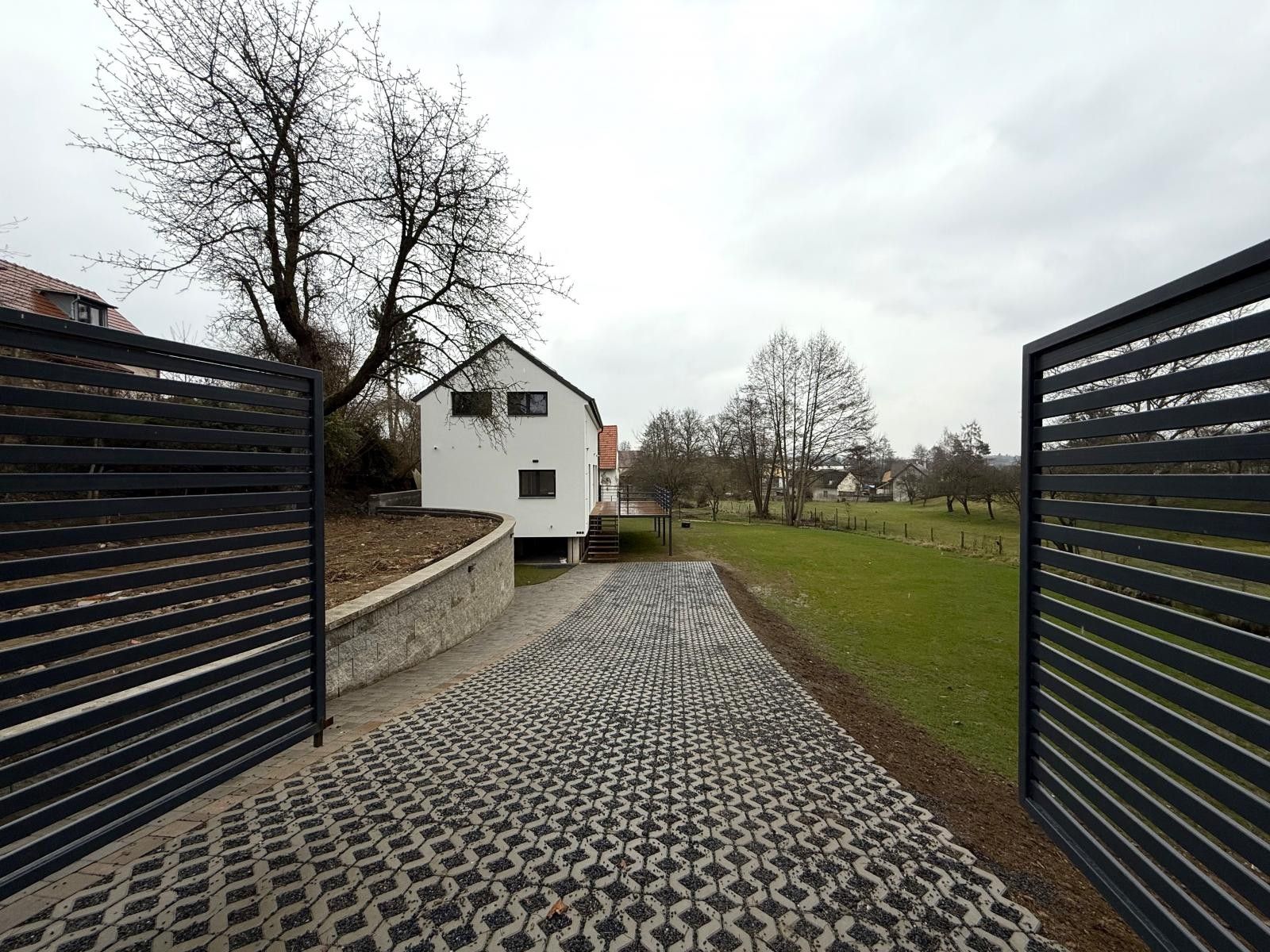 Zahrada je nyní téměř bezúdržbová, jen s trávou. Je zde dostatečný prostor na umístění bazénu.