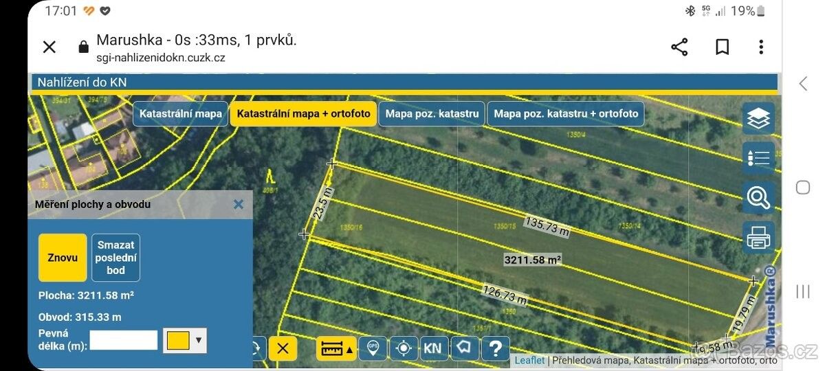 Zemědělský pozemek, 1 658 m², Podolí
