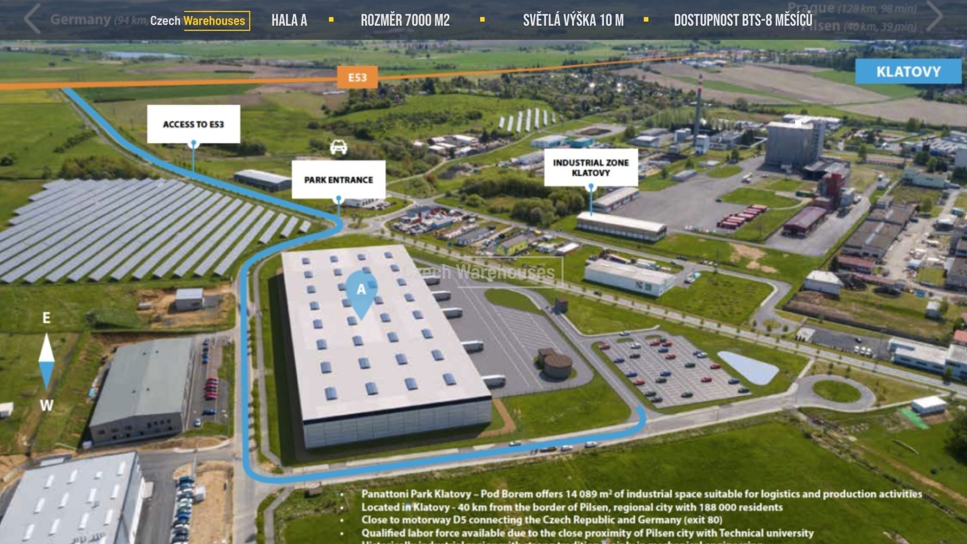 ◉ přístup: rampy pro TIR (vybavené hydraulickým vyrovnávacím můstkem s nosností 60 kN)